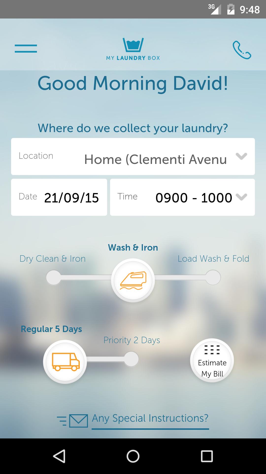 O aplicativo oferece acesso aos serviços de lavanderia inteligente da My Laundry Box :